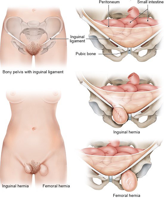 Whalen HR, Kidd GA, O'Dwyer PJ. Femoral hernias. BMJ 2011; 343: d7668.