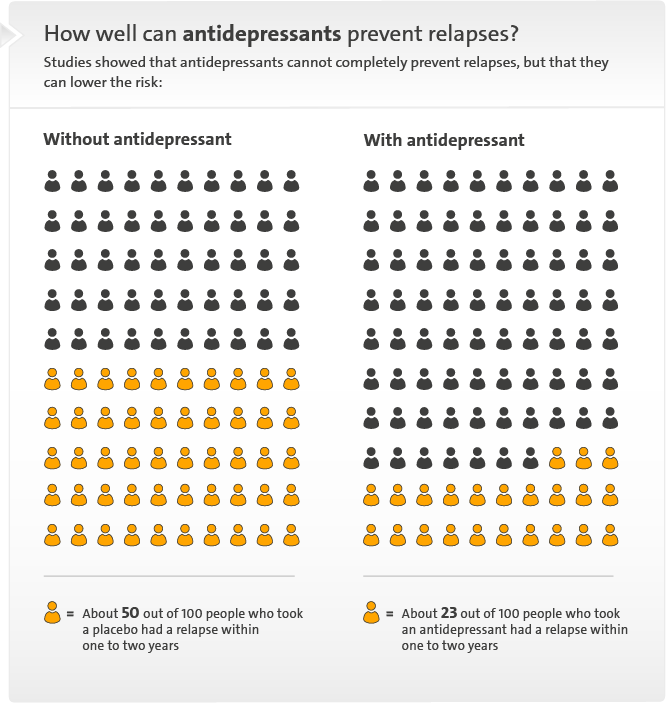 Geddes JR, Carney SM, Davies C et al. Relapse prevention with antidepressant drug treatment in depressive disorders: a systematic review. Lancet 2003; 361(9358): 653-661.
